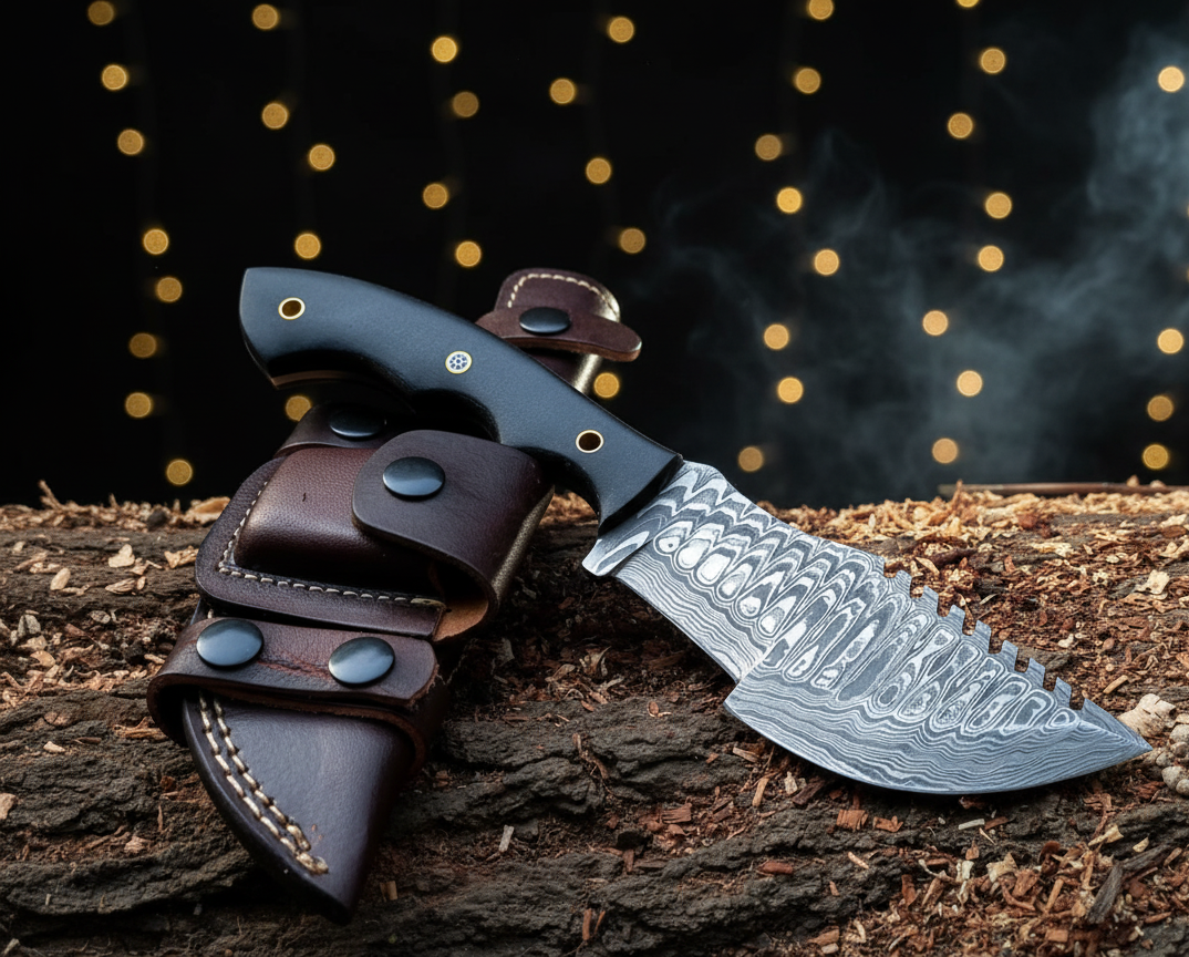Tags: bushcraft knife, Compact hunting knife, Damascus outdoor knife, full tang knife, hand forged blade, leather sheath, Micarta handle, survival knife, utility knife, Vicky Enterprises