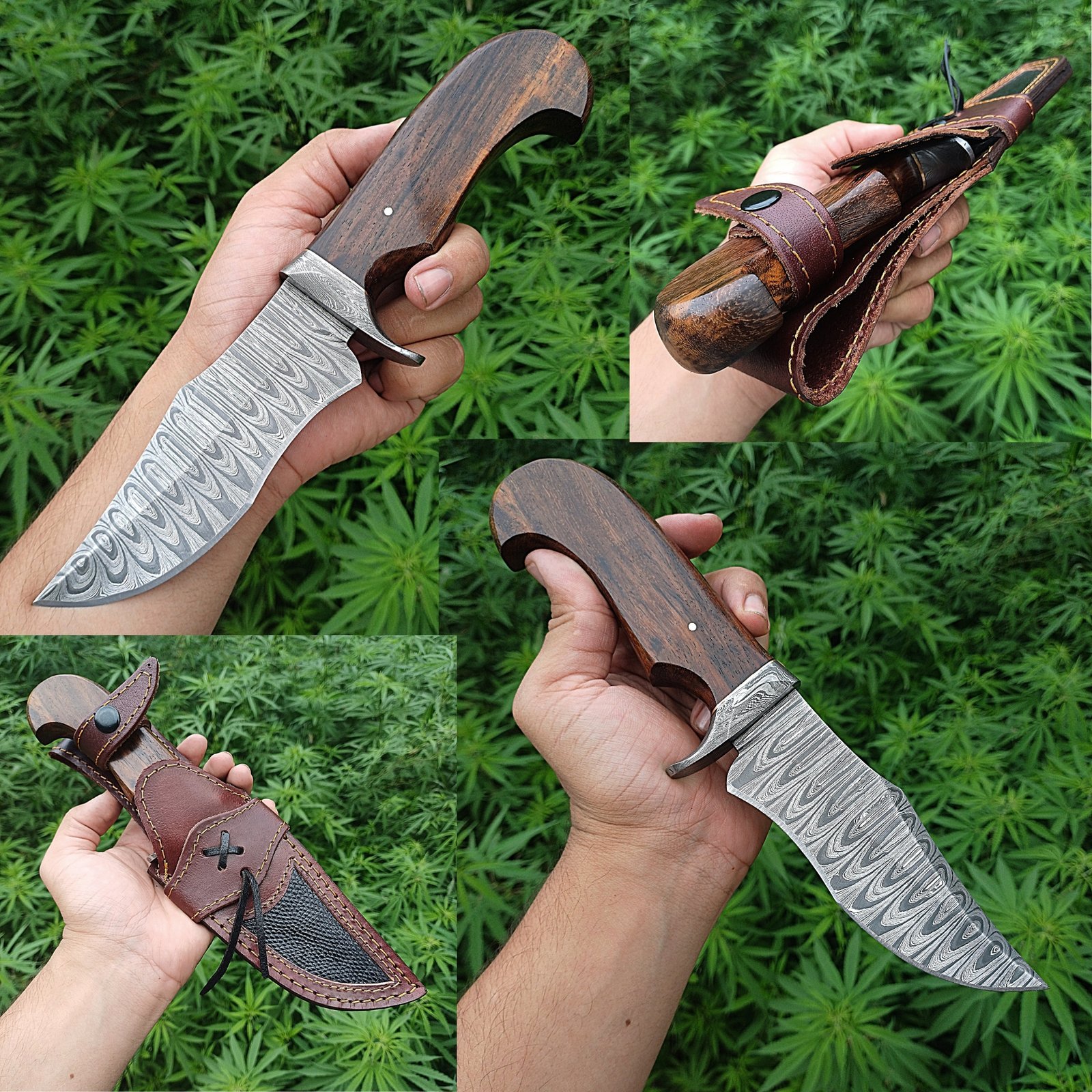 Handmade Damascus Hunting Knife with Sheath – 5 Inches Damascus Fixed Blade Knife Edc, Horizontal Carry Leather Sheath.