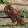This sheath is meticulously constructed from thick, top-grain genuine leather, chosen for its exceptional strength, resilience, and rich, natural character. The beautiful dark brown hue (or reddish-brown, describe what’s visible) will develop a unique patina over time, adding to its rugged charm and storytelling. The leather is treated to resist the elements, providing a robust shield for your blade in any outdoor environment.