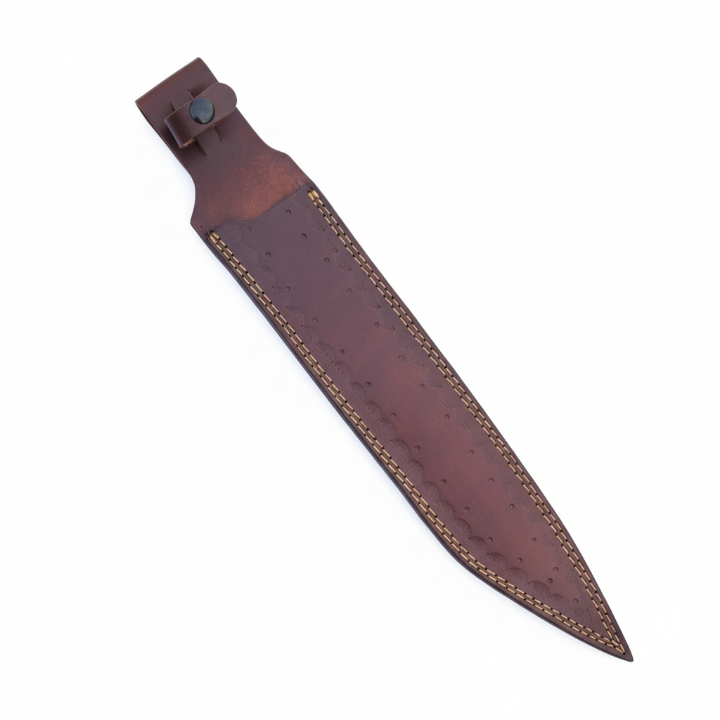 Heavy-Duty Hand-Stitched Leather Sheath: For secure and convenient carry in the field, this formidable blade comes with a high-quality, custom-fit, and robust leather sheath. Expertly hand-stitched, the sheath provides reliable protection for the blade and allows for safe transport, keeping your powerful tool readily accessible whenever needed.