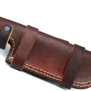 This sheath is meticulously constructed from thick, top-grain genuine leather, chosen for its exceptional strength, resilience, and rich, natural character. The beautiful dark brown hue (or reddish-brown, describe what’s visible) will develop a unique patina over time, adding to its rugged charm and storytelling. The leather is treated to resist the elements, providing a robust shield for your blade in any outdoor environment.
